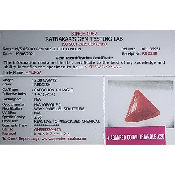 We provide authorised Gem Lab certification along with gemstone. Keeping in mind that the prices of gemstones change depending on global market prices, we are committed to keeping the prices as fair as possible for the benefit of our clients. You can check a wide range of red coral stones on our website www.manka.co.uk, trusted suppliers of red coral gemstones at reasonable prices.
