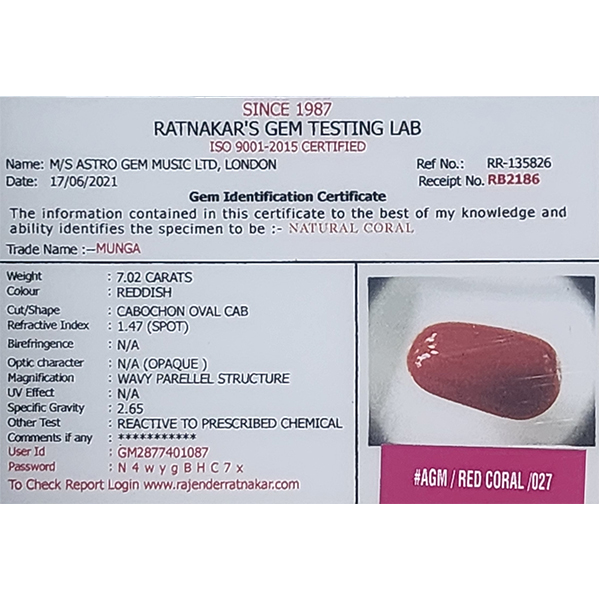 We provide authorised Gem Lab certification along with gemstone. Keeping in mind that the prices of gemstones change depending on global market prices, we are committed to keeping the prices as fair as possible for the benefit of our clients. You can check a wide range of red coral stones on our website www.manka.co.uk, trusted suppliers of red coral gemstones at reasonable prices.