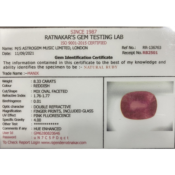 We provide authorised Gem Lab certification along with gemstone. Keeping in mind that the prices of gemstones change depending on global market prices, we are committed to keeping the prices as fair as possible for the benefit of our clients. You can check a wide range of ruby stones on our website www.manka.co.in trusted suppliers of ruby gemstones at reasonable prices.